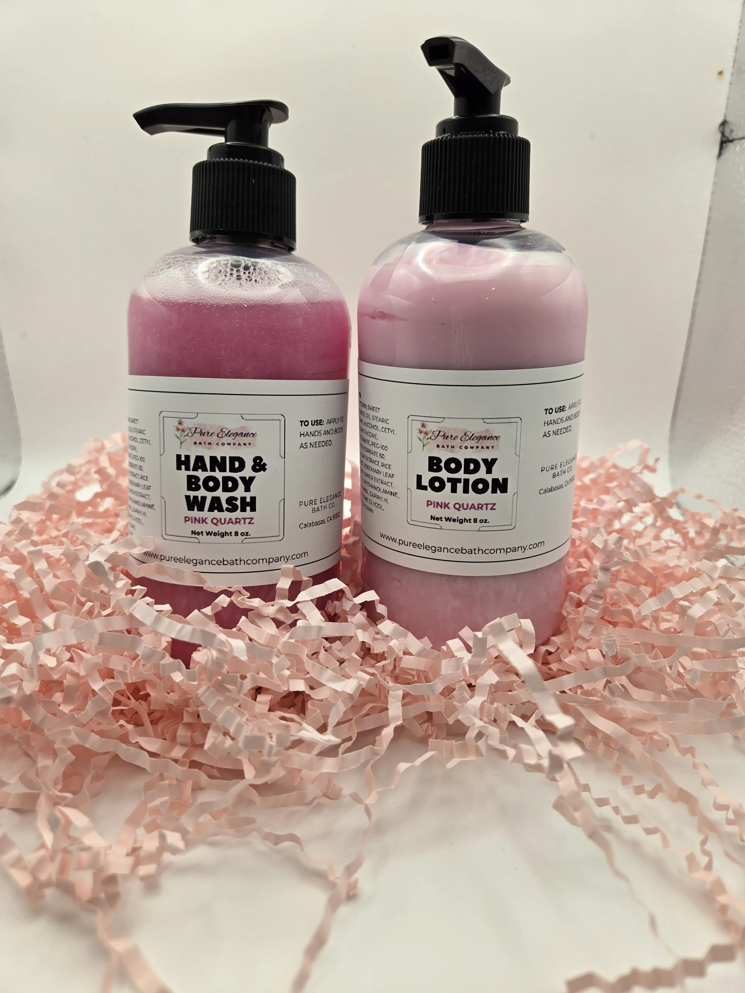 Wrap yourself in the radiant softness of Pink Quartz, a luxurious duo that leaves your skin cleansed, nourished, and delicately scented with notes of pink amber and vanilla—a warm, feminine blend that feels both soothing and sophisticated.