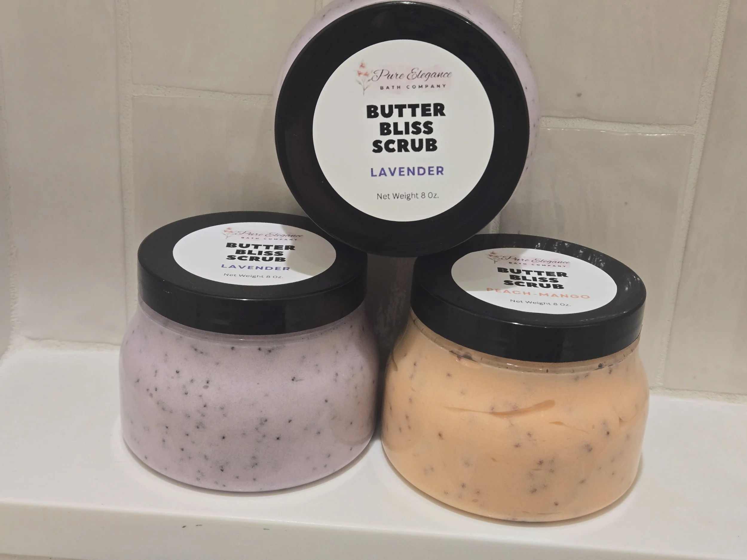 Peach Mango-Sugar, Lavender Butter, Medium Chain Triglycerides, Shea Butter, Emulsifying Wax, Lemon Butter, Phenoxyethanol, Caprylyl Glycol, Sorbic Acid, Vitamin E, Fragrance Oil, Cranberry Seeds